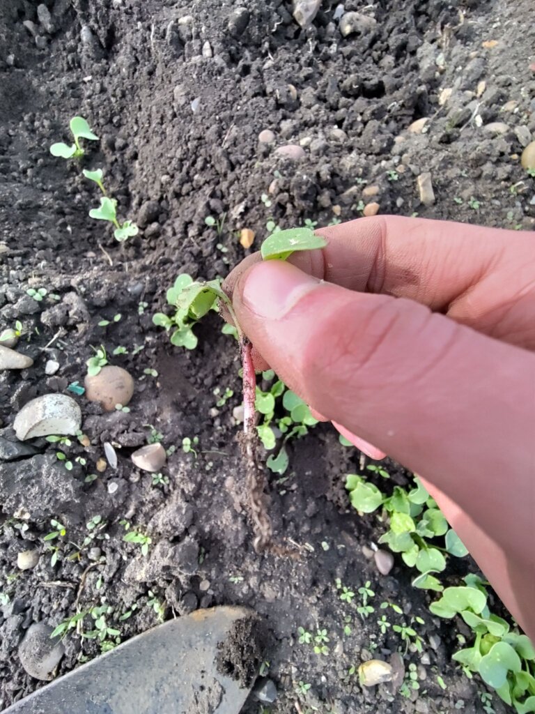 Meanwhile back on the plot, the radish seeds were coming up nicely too. The carrots and onion sets were taking a bit longer to start showing shoots.