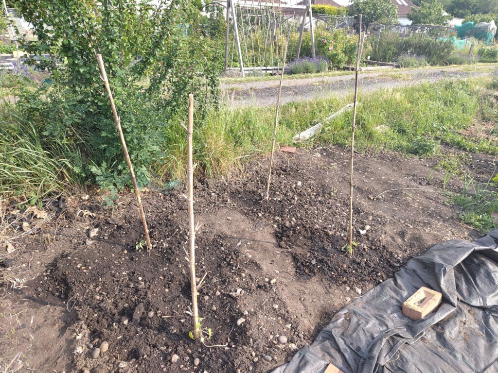 However, because the plot was on an exposed site, many people waited until the start of June before planting out. So that’s what I did.